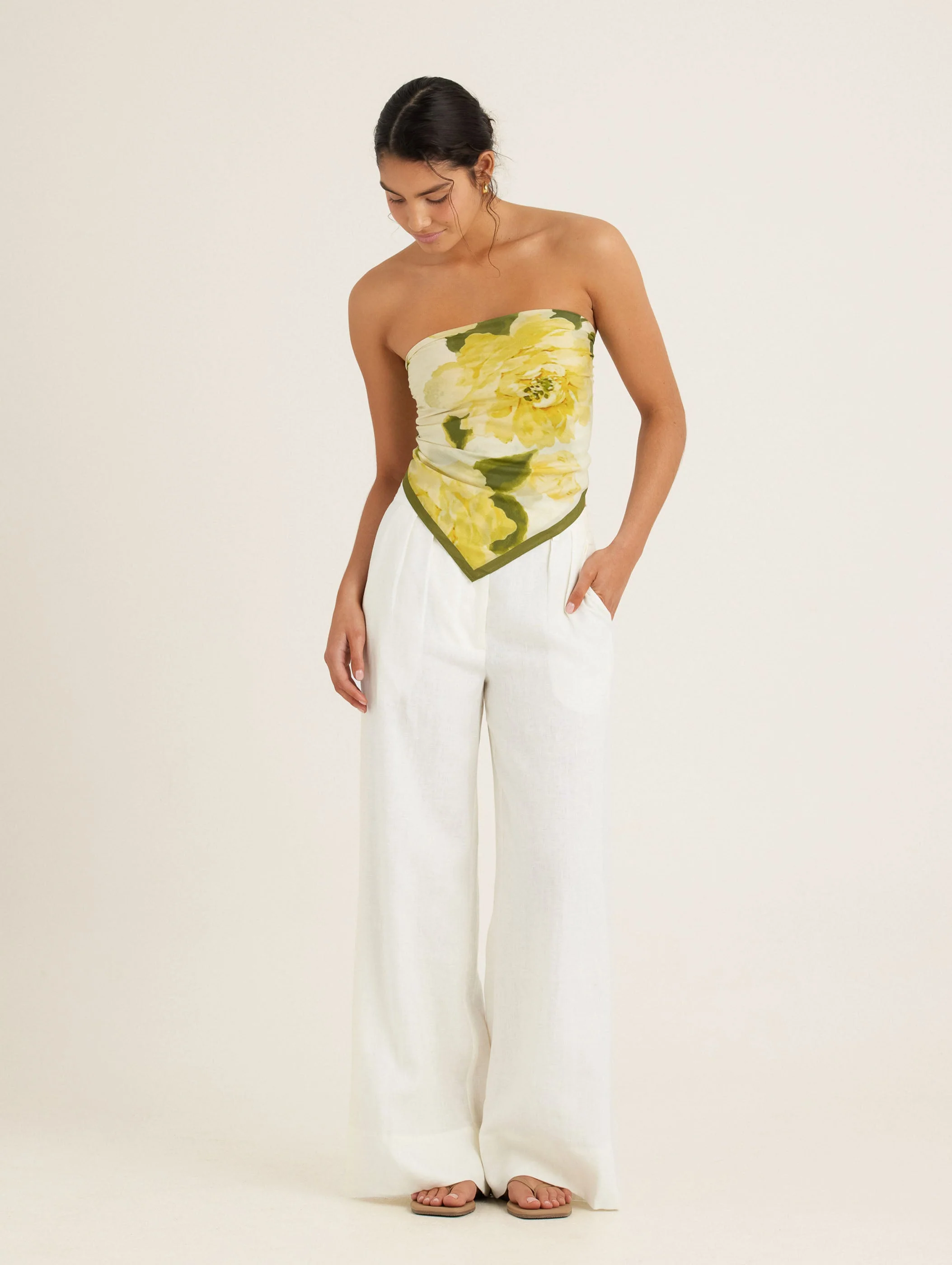 The perfect summer accessory. Our handpainted Clair De Lune floral adorns the Signature Scarf, a versatile piece that elevates any look. Whether styled as a headscarf, tied to your favorite basket bag, or folded into a bandeau top, this scarf offers endless styling possibilities. Crafted from a sustainable blend of ECOVERO™ and Silk, it is finished with an olive green border and the peony monogram. A timeless gift, perfect for any occasion, it's sure to be cherished for years to come.